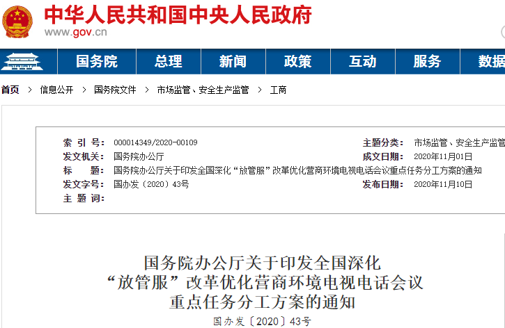 近日,國務(wù)院辦公廳印發(fā)《全國深化“放管服”改革優(yōu)化營商環(huán)境電視電話會議重點任務(wù)分工方案》(以下簡稱《方案》),對下一階段深化“放管服”改革優(yōu)化營商環(huán)境工作作出部署。