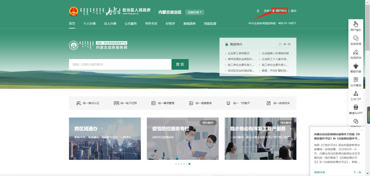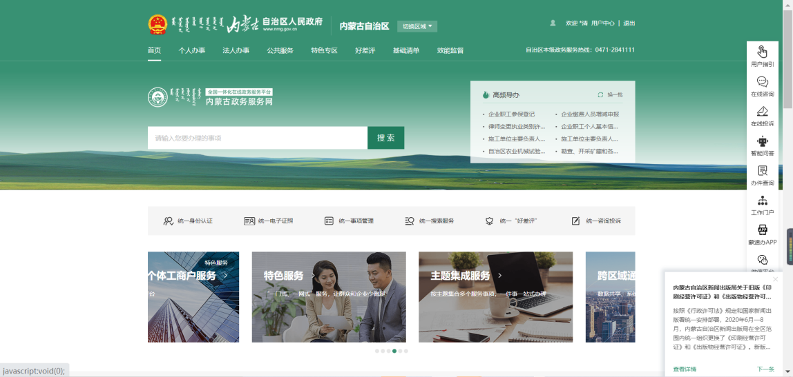 自治區(qū)住建領(lǐng)域電子證照系統(tǒng)是基于自治區(qū)政務(wù)服務(wù)網(wǎng)的功能使用的,需要對電子證照查詢及打印使用的用戶首先登陸政務(wù)服務(wù)網(wǎng);