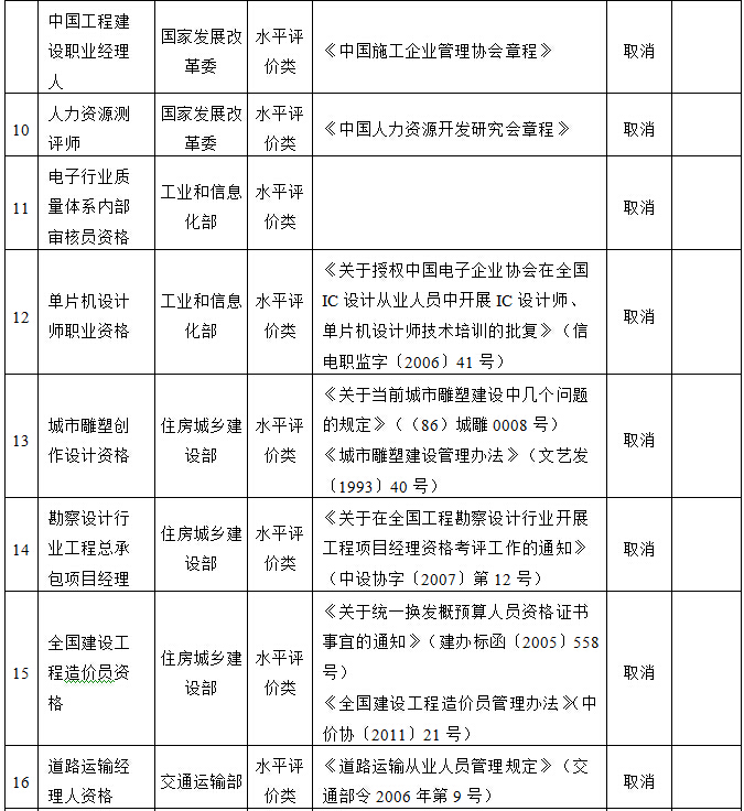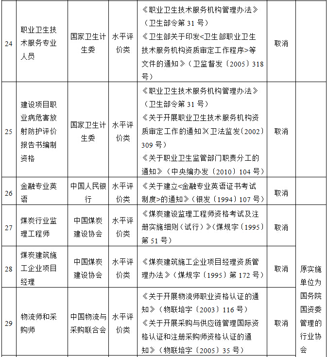 國(guó)務(wù)院決定取消的職業(yè)資格許可和認(rèn)定事項(xiàng)目錄